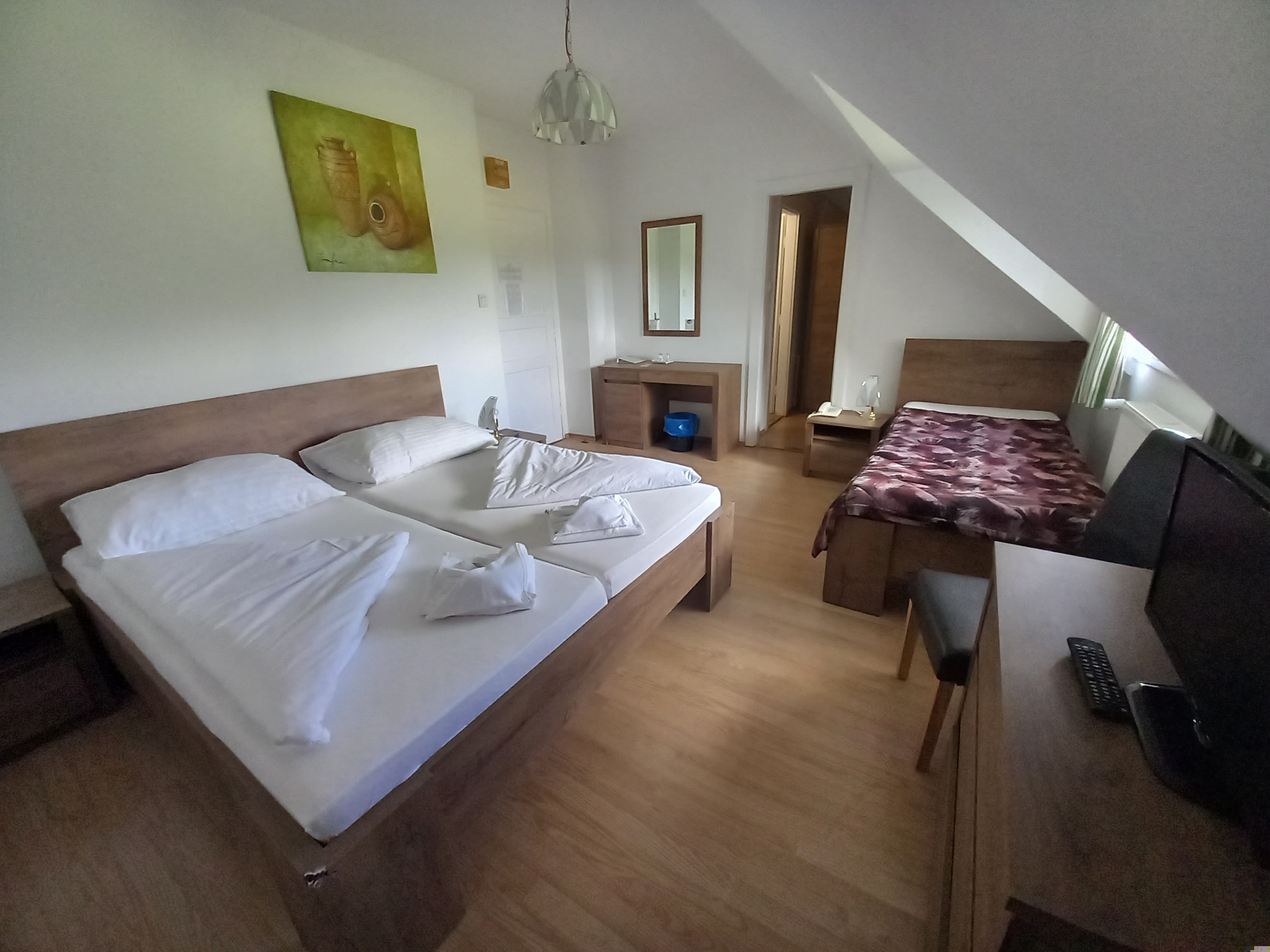 If there is space for a child in the bed between the parents, we can also accommodate a family with 2 children in a double room.